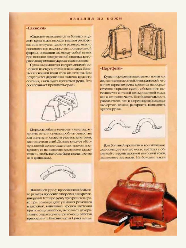 В книге описывается производство и обработка кожи, материалы, которыми она обрабатывается, приемы работы с кожей и подробно показан процесс изготовления различных изделий: