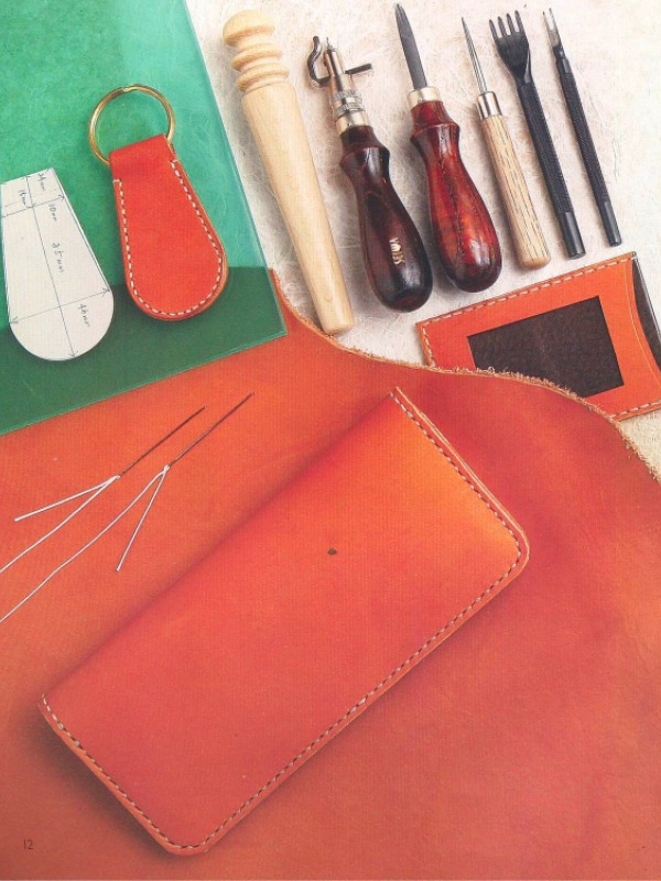 Выкройка небольшой кожаной женской сумки с аппликацией в виде листа цветка Монстеры