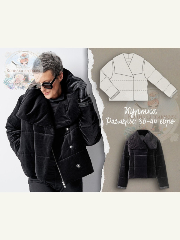 Даже объемная куртка, простеганная вместе с волюменфлизом, может быть на редкость женственной. Наглядный пример — модель из бархата с широким шалевым воротником, отделанная внизу рукавов репсовыми лентами и цепочками со стразами.