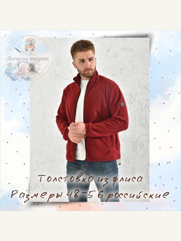 Выкройка толстовка мужская из флиса красного цвета