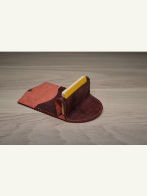 Выкройка кожаная визитница (стоит на столе)