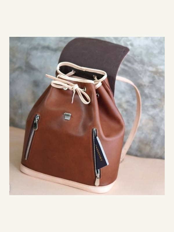 Выкройка кожаного женского рюкзака с клапаном на завязках