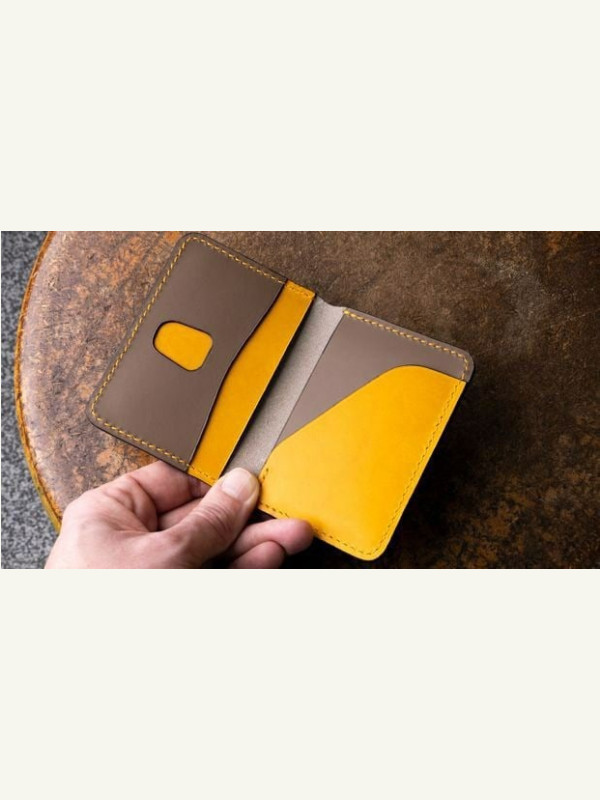 Выкройка простой картдхолдер бифолд под карты из кожи с вырезом под быстрый доступ к картам
