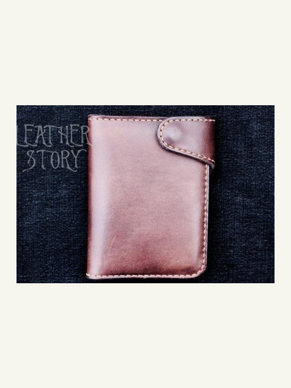Выкройка интересный тонкий кожаный бифолд на кнопке под карты и наличные