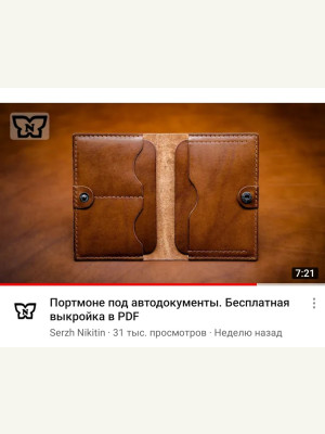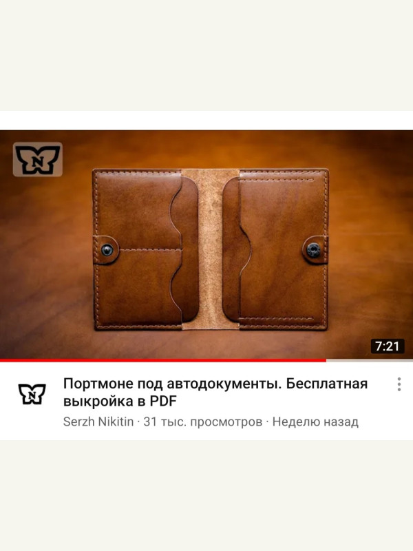 Выкройка кожаный качественный бифолд под автодокументы