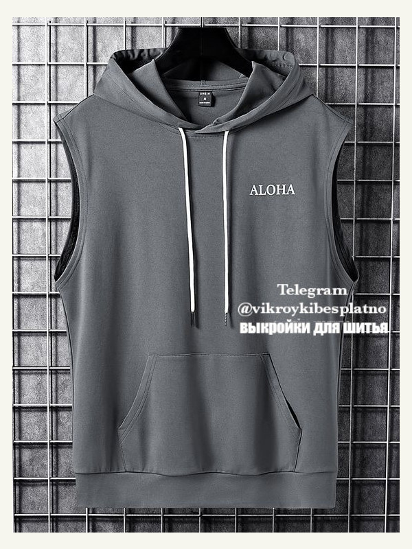 Выкройка мужская трикотажная спортивная футболка без рукавов с капюшоном