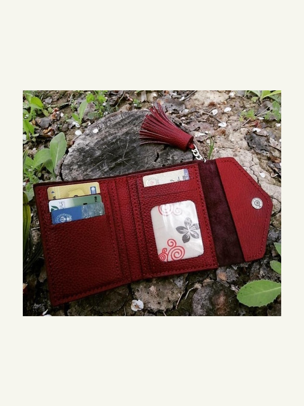Небольшой женский кошелёк с большим количеством отделов для карт. Выкройка похоже построена по фото.