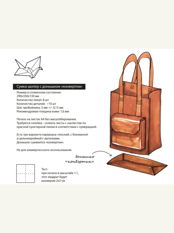 Выкройка тканевая простая сумка шоппер на молнии и с плечевым ремнём