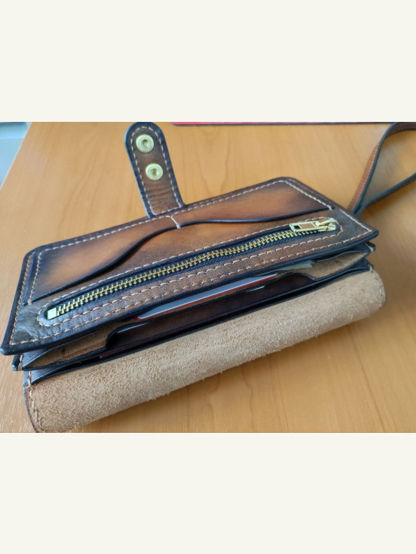 Выкройка интересного бифолд с отделом под монеты на молнии