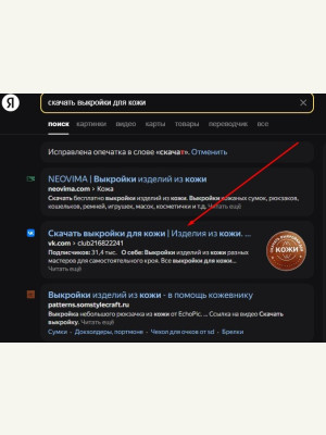 Группа стоит на 3 месте в Яндекс по запросу «Скачать выкройки для кожи».