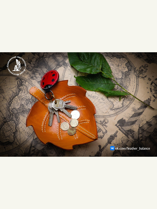 Выкройка кожаная тарелка ввиде листка для мелочей