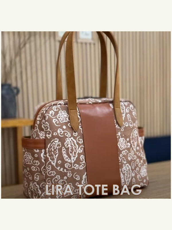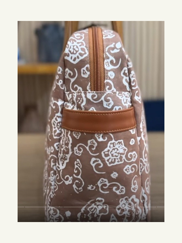 Выкройка небольшая женская тканевая сумка с кожаным вставками