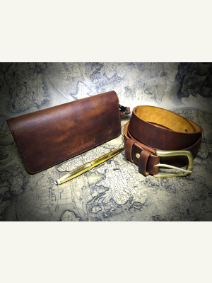 • Цветочный эскиз тиснения для кошелька Цветочный эскиз тиснения для кошелька от Tandy Leather. КРАСКА И ОТДЕЛКА БУМАЖНИКА При окрашивании и отделке тисненой кожи убедитесь, что кожа полностью высохла. Чтобы получить цвет на этом бумажнике, сначала покрасить фоновые области с помощью # 2800-03 Medium Brown Waterstain. Использовать одну из более тонких кистей из набора кистей № 3434-01. Следующим шаг - покрасить центральную часть панели цветом # 2800-05 Tan Waterstain. Для этого использовать одну из кистей из набора кистей # 3434-03. Дать краске хотя бы пару часов высохнуть перед нанесением лака. При нанесении финиша использовать губку высокой плотности № 3450-00 - они не оставляют блуждающих волокон в финише, как это иногда бывает с остатками шерсти. На всю кожу наносится два слоя Super Shene № 2610-01. Первый слой более тяжелый и наносится на кожу круговыми движениями. Перед нанесением второго слоя покрытию дают полностью высохнуть (желательно в течение ночи). Второй слой очень светлый. Еще раз, перед нанесением антиквариата финишу дают полностью высохнуть. Затем на все изделие нанести обильное покрытие # 2607-07 Briar Brown Gel Antique. Для нанесения использовать губку высокой плотности № 3450-00, и излишки антиквариата немедленно удалить сухой бумажной салфеткой. Этот процесс окрашивания и отделки, дает те результаты, которые вы видите.