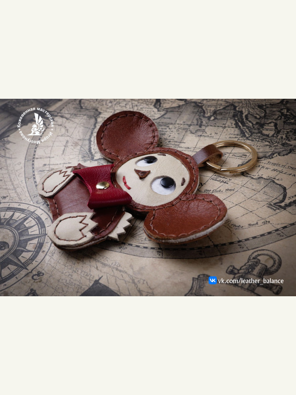 Выкройка кожаный брелок на ключи «Чебурашка»