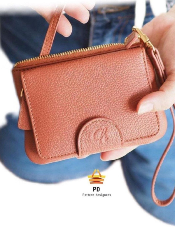 Выкройка большой кожаный кошелёк на клапане, с различными отделами