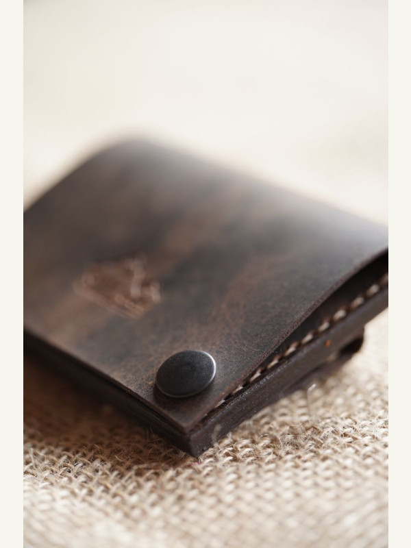 Нюансы! Рекомендации!Толщина кожи не должна превышать 1.2-1.4 мм., а то получится слишком толстый ( пять слоёв кожи)Шаг пробойника 5 мм.Карта в карман за монетницей ложится плотно, так задумано!)Делал из кожи Crazy Horse 1.2-1.4 мм.