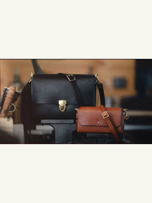 Выкройка сумки — кроссбоди из цельного куска кожи, то есть практически без швов, от James Graves.