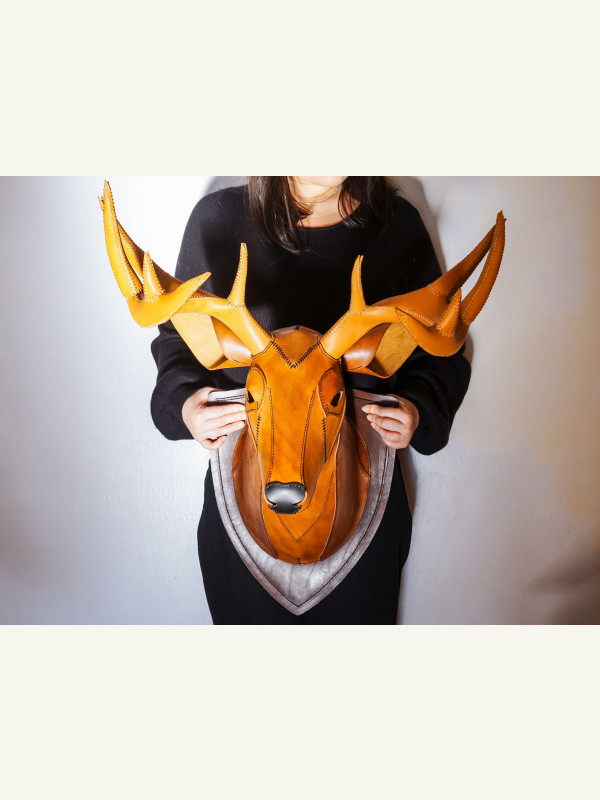 Настенное крепление из кожи в виде головы оленя от Paintyee Designs
