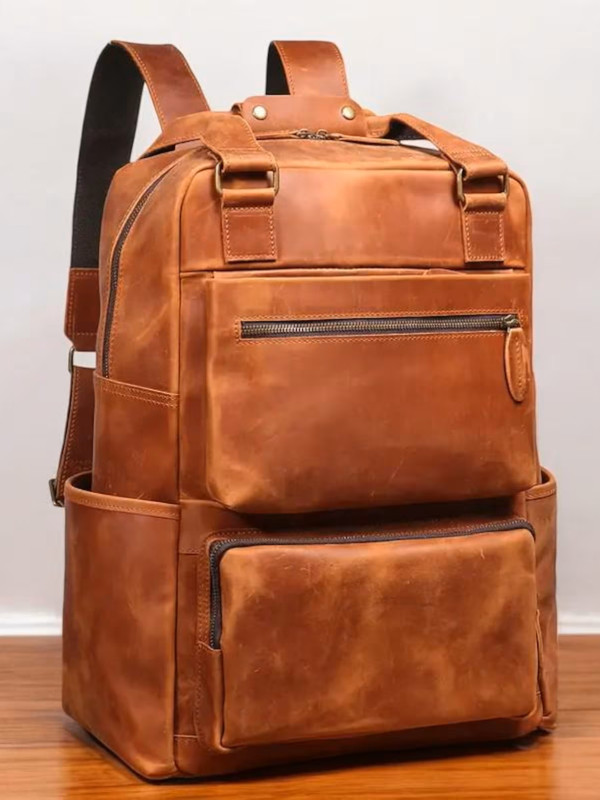 Кожаного рюкзака с двумя карманами спереди от FloresPatterns