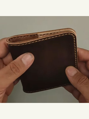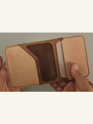 Кошелек который решил сотворить на Новый год для отца.) Выкройку брал в интернете, что голову ломать. Кожа растишка, без окраски. Наружная часть из 1,3-1, 5мм. Внутренние части 1 мм. Окрашивал, полировал.