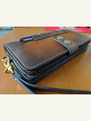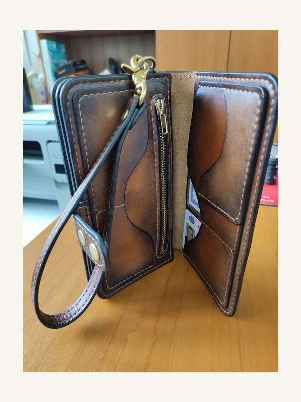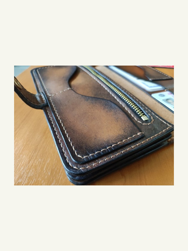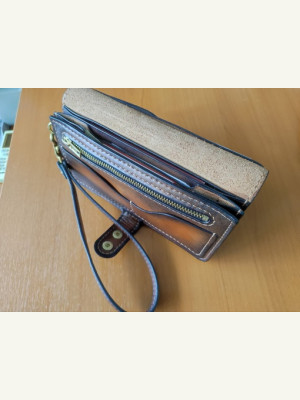 Доброго дня, коллеги. Хочу предложить выкройку барсетки, которая уже была здесь от ютуб-канала "Кожаные изделия своими руками". Я её немного переделал: шаг швов сделан 5 мм вместо 4, скруглены углы, немного расширен функционал. Делал для себя. Конструкция очень понравилась. Изделие довольно компактное - без труда поместится даже в задний карман, и при этом туда можно положить все документы, карты наличку и телефон.