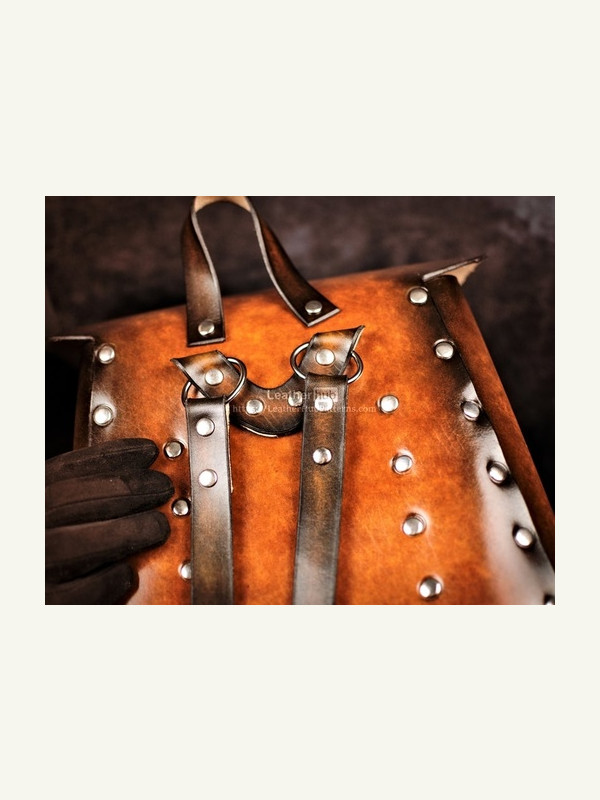 Бесплатная выкройка рюкзака с заклепками от LeatherHubPatterns.