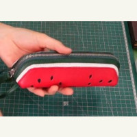 Выкройка пенал из кожи на молнии с рисунком в виде арбуза