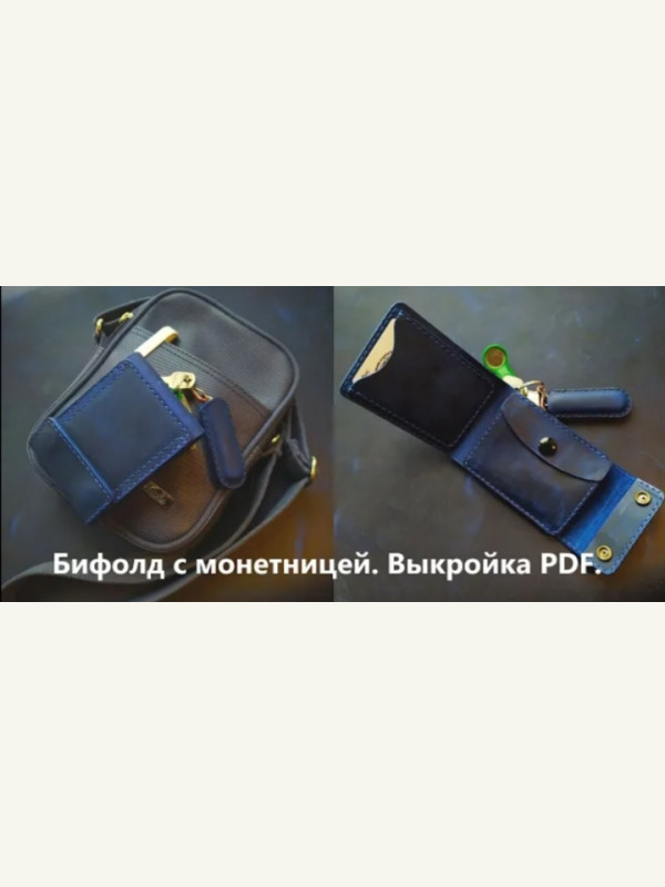 Выкройка кожаный кошелёк бифолд с монетницей и на кнопках