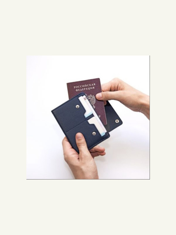 Дорожный паспорт-кошелек с прорезями для кредитных карт, наличных и паспорта.