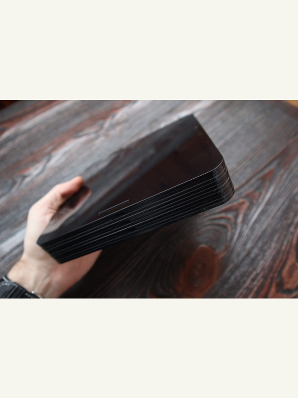 Макет имеет припуск 0.1мм на сторону, который в процессе резки заберёт лазер и по итогу шаблоны будут иметь нужный размер в соответствии с маркировкой.