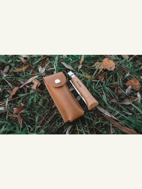 Выкройка для создания кожаного чехла для ножа Opinel №8 из кожи растительного дубления, арт Buttero.