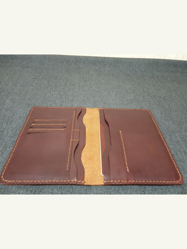 паспорт, отдел для стс, отдел для в/у, 6 дисконтных/банковских карт, ну и есть небольшой отдел для купюр сложенных пополам.