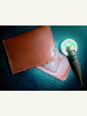 Вот такие докхолдер и чехол для смартфона получились у меня. Кожа растительного дубления с финишем Коньяк 1,2 мм№ 66, нитки №8 Zj шаг 3.38 края токонол + коламбус. Выкройки под шаг 3,38.