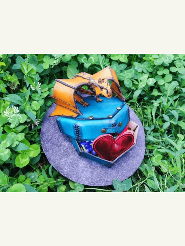 Выкройка кожаная шкатулка под украшение с фигурой дракона на крышке