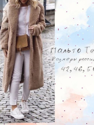 --- Page 1 ---------------------------------------------Пальто Teddy из искусственного меха с рукавом реглан. Размеры российские 42, 46, 50.