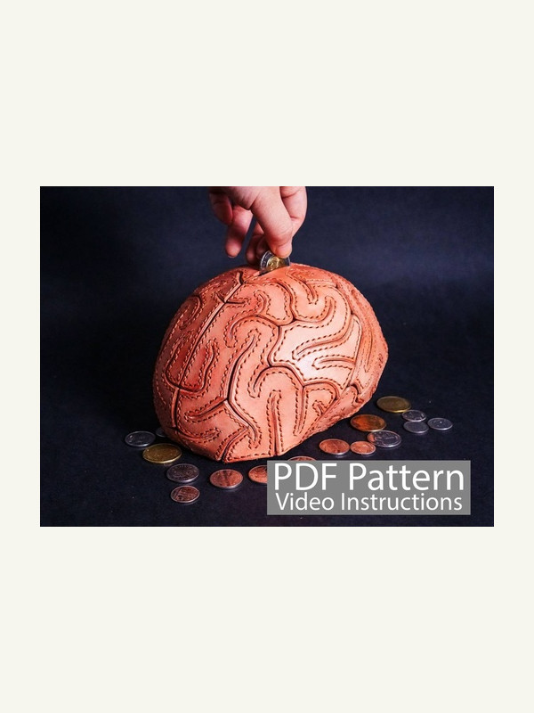 Бесплатная выкройка кожаная Копилка в виде мозга от Paintyee Designs.