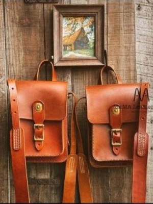 Выкройка кожаная сумка-рюкзак дорожная с двумя лямками коричневого цвета