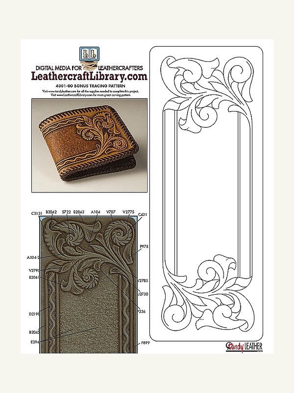 Цветочный эскиз тиснения для кошелька от Tandy Leather.