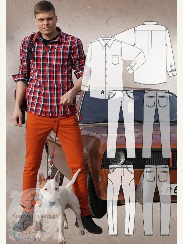 -Узкие мужские джинсы + брюки-чиносы с опущенным швом сидения (посадка отличается от джинсов)