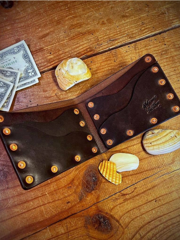Бесплатная выкройка кошелек бифолд на заклепках от Mascon leather.