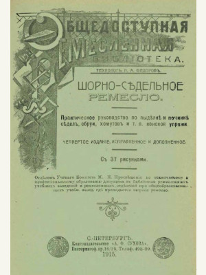Книга "Шорно-Седельное Ремесло" 1915 года