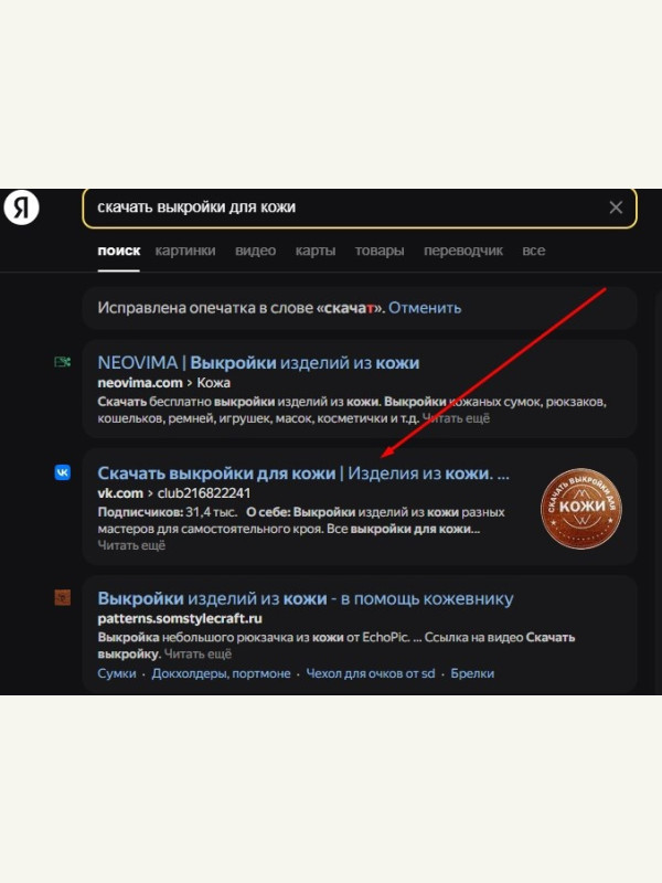 Группа стоит на 3 месте в Яндекс по запросу «Скачать выкройки для кожи».