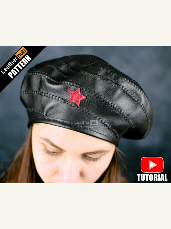 Бесплатная выкройка женского спирального берета из кожи, с кокардой в виде звезды от Leather Hub Patterns.