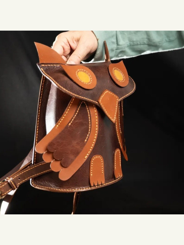 Выкройка кожаного рюкзака в виде совы