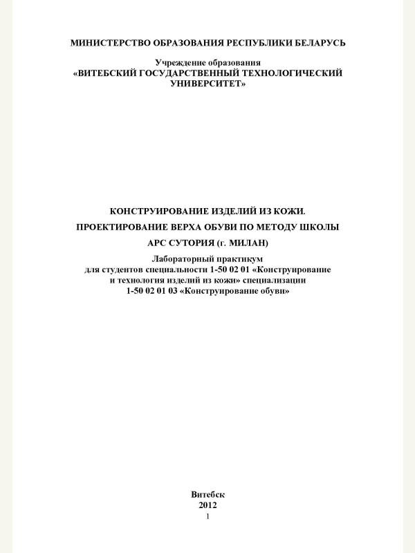 Лабораторный практикум для студентов специальности 1-50 02 01 «Конструирование и технология изделий из кожи» специализации 1-50 02 01 03 «Конструирование обуви»