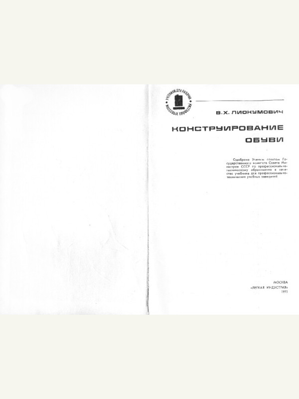 --- Page 1 ---------------------------------------------Конструирование обуви Лиокумович В.Х. 1975