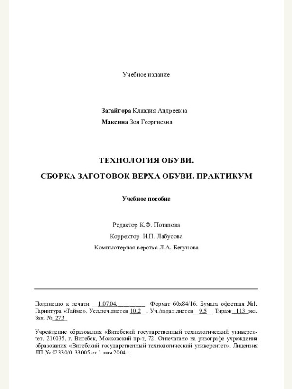 --- Page 1 ---------------------------------------------Технология обуви Сборка заготовок верха обуви Практикум Загайгора К.А. Максина З.Г.