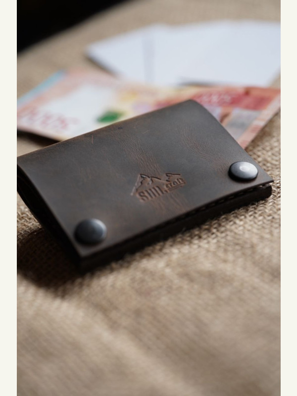 Нюансы! Рекомендации!Толщина кожи не должна превышать 1.2-1.4 мм., а то получится слишком толстый ( пять слоёв кожи)Шаг пробойника 5 мм.Карта в карман за монетницей ложится плотно, так задумано!)Делал из кожи Crazy Horse 1.2-1.4 мм.