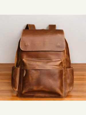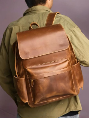 Кожаного рюкзака с клапаном и карманом спереди от FloresPatterns