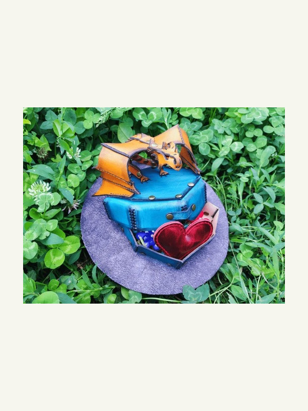 Скачать бесплатно выкройку кожаная шкатулка под украшение с фигурой дракона на крышке
